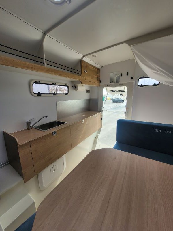 La Easy est appréciée pour sa légèreté et son habitabilité optimisée. Mais ici, nous avons intégré une douche intérieure, un ajout inédit pour ce modèle, qui offre un niveau de confort supplémentaire pour les voyages longue durée. Son aménagement intérieur a été entièrement pensé pour maximiser l’espace et la praticité, tout en conservant l’ADN TIPI4x4 : une conception robuste, légère et sans compromis sur la qualité.