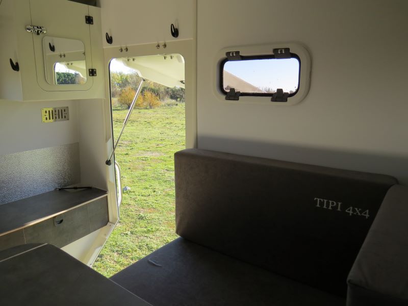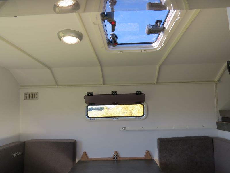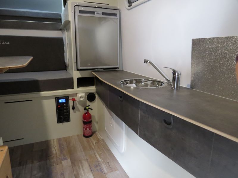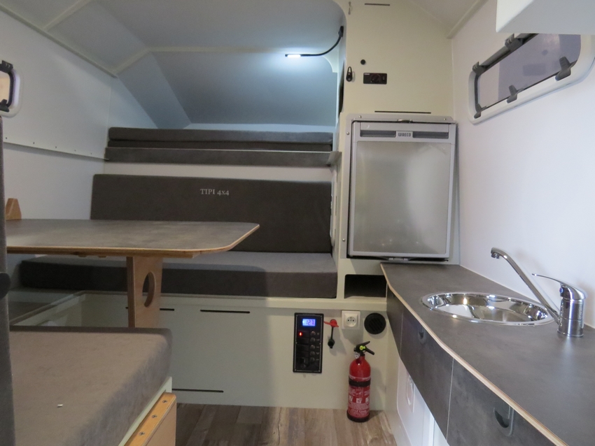 Avec son plan de cuisine au design effet béton ciré, son sol imitant de vieilles planches et, en point d’orgue, un très grand panneau de toit offrant une vue imprenable sur les étoiles, cette cellule incarne le confort et l’élégance en voyage. Chaque détail a été pensé pour ajouter une touche unique et chaleureuse à l’esprit TIPI4x4.