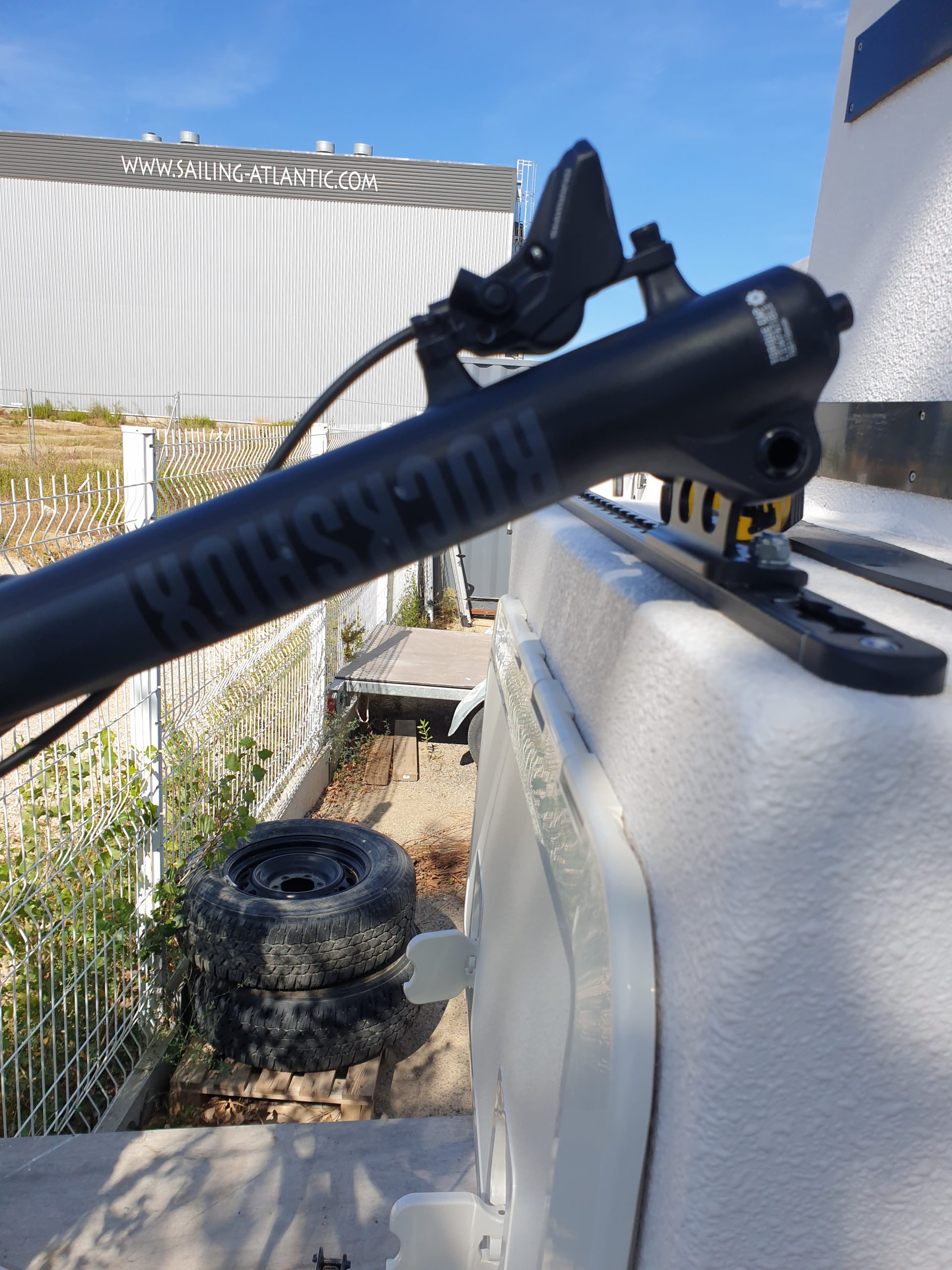 Nous préconisons l’installation d’un support de fourche boulonné sur un rail aéro. L’axe de fourche doit être compatible avec la fourche de votre vélo afin d’éviter un démontage constant.