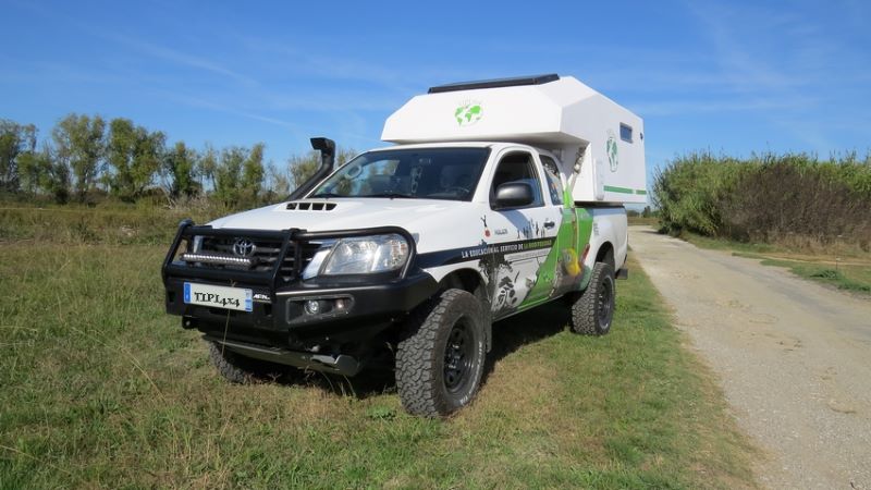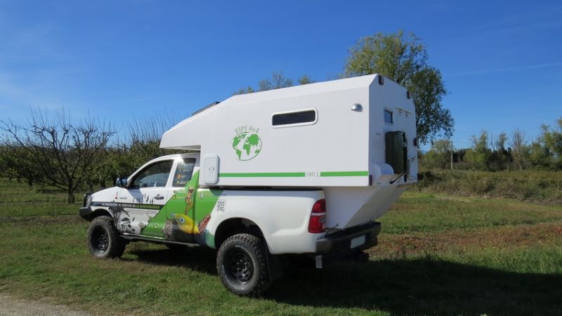 Voici quelques photos de notre dernière réalisation : une cellule TIPI4x4 installée sur un magnifique Toyota soigneusement préparé pour les grandes aventures. Ce véhicule unique, joliment décoré, n’est pas seulement destiné à parcourir les pistes du monde, il a aussi une mission importante à accomplir.